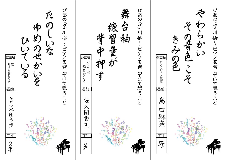 ホーム > イベント結果報告 > 15周年記念コンサート 川柳優秀作品