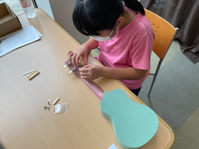 夏休み企画:ウクレレを作ってみよう!(報告) 2021年8月29日 今日(8月29日)は本店ショールームにて、夏休み、ウクレレを作ってみよう! をしました。 みんながイラストを描いてきたウクレレを、手作りで作ってみました。 さぁ、ウクレレ出来たよ~♬ みんなの作ったウクレレ見てみよう! お待ちかねのウクレレを弾いてみよう♪ 講師は野村先生です。