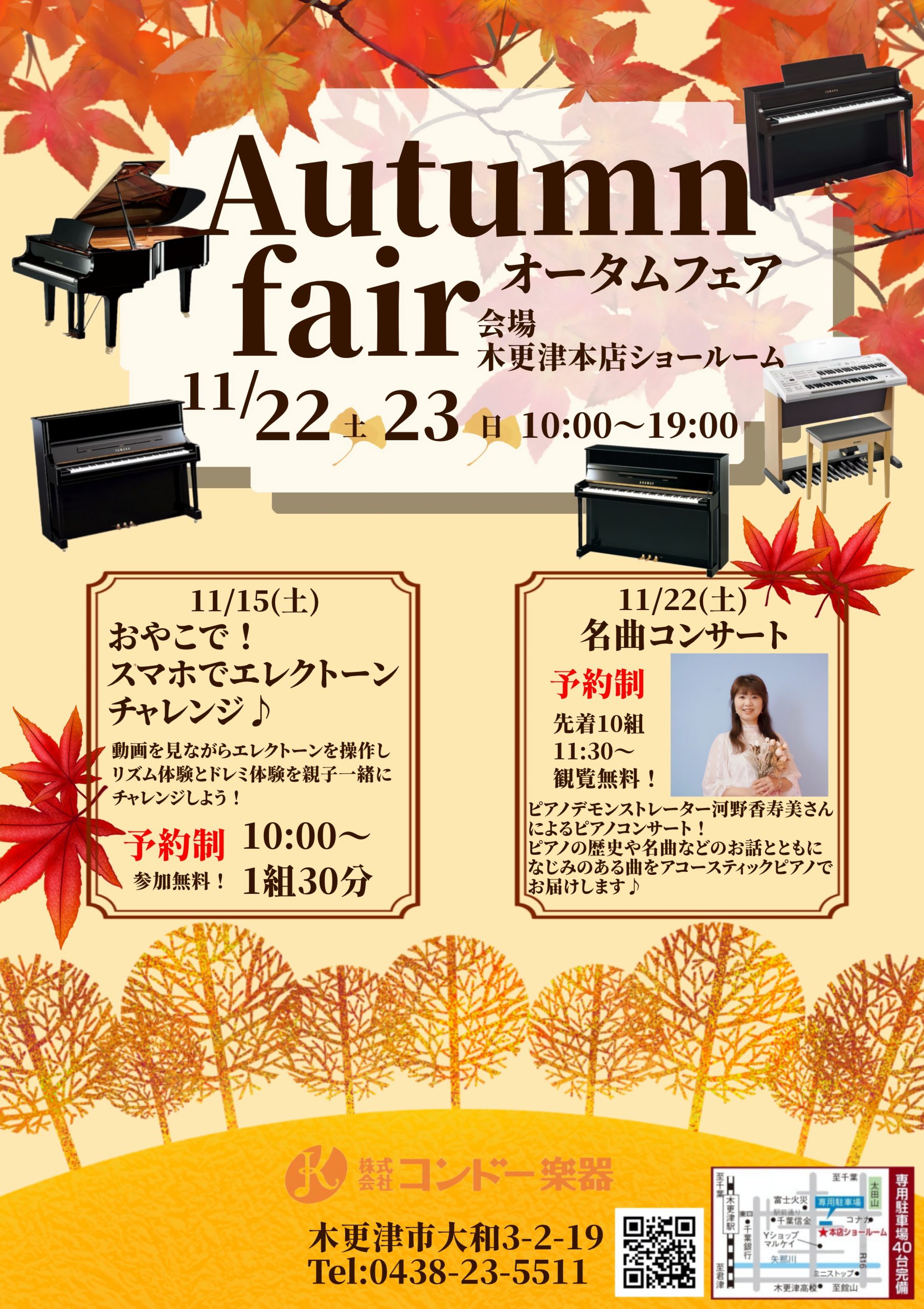 木更津本店ショールームでは、11月22日(土)、23日(日)の2日間、Autumn Fairを開催いたします。