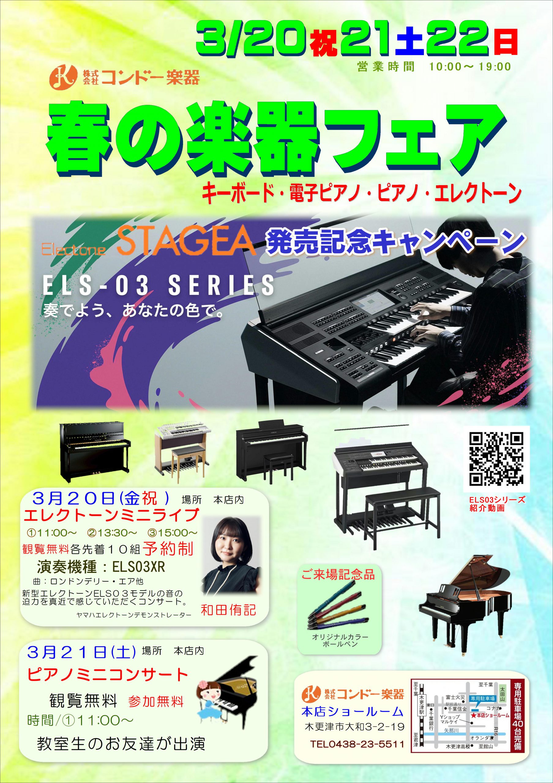 3/20(祝)、21(土)、22(日)木更津本店ショールーム春の楽器フェア開催